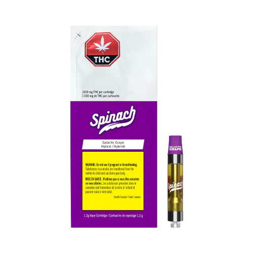 An interstellar flavor journey begins with earthly elements straight from the vine. The Spinach® Galactic Grape 1.2 g vape is bursting with sweet flavors that reach to the ends of the universe and back with just one puff. Inspired by the Galactic Grape strain with Grape Diamonds and Stardawg lineage, it’s no surprise that this potent vape bursts through flavors and aromas beyond the stratosphere with 1000 mg of THC per cartridge. Our rich CO2 extract is cold-filtered at subzero temperatures and then quadruple distilled to ensure consistency and consistently high quality.
